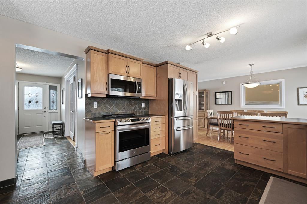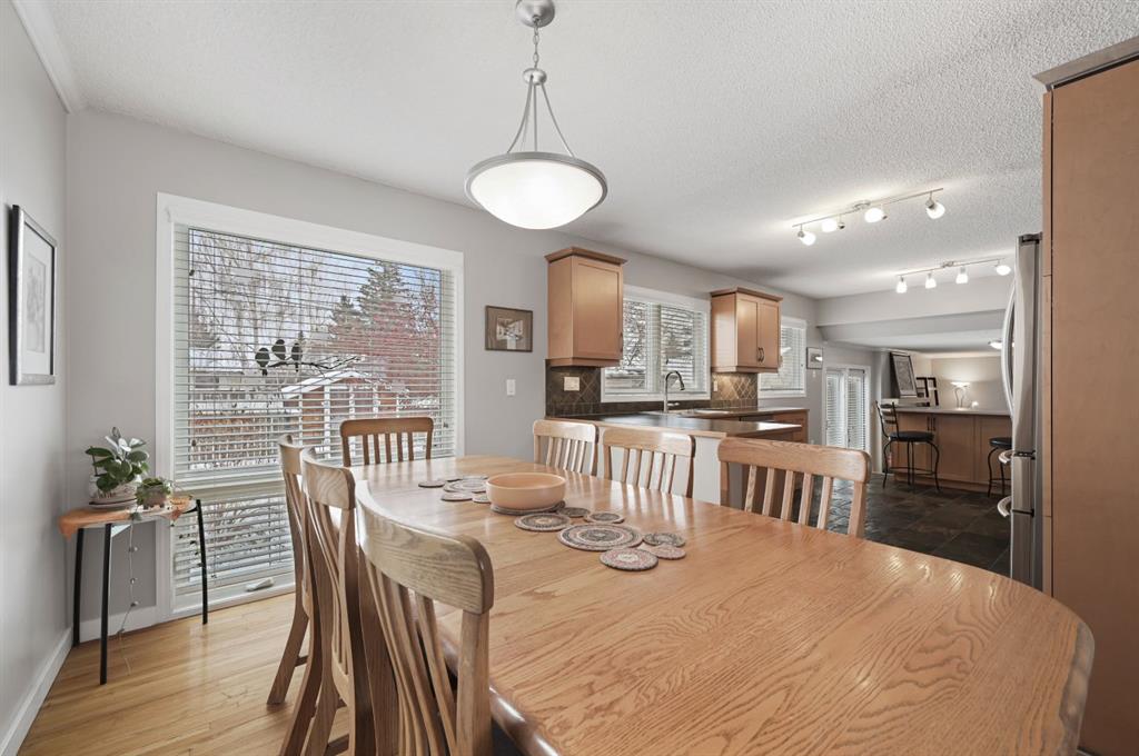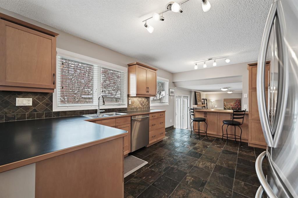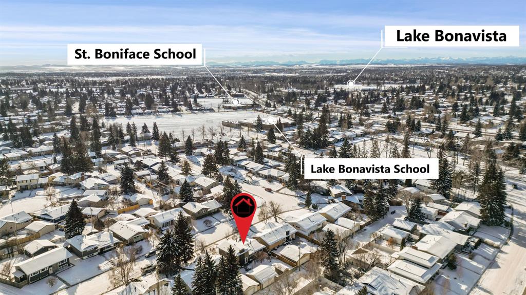 Nestled on a quiet crescent in the highly desirable community of Lake Bonavista, this beautifully maintained 4-bedroom, 3.5-bathroom home is steps from top-rated schools, parks and private lake access for year-round activities. This classic 4-level split is truly move-in ready, boasting over 2,400 sq.ft. of developed living space with numerous key updates, including FURNACE (2023), AC (2023), ROOF (2011), WINDOWS (2011), and SIDING (2011). MAIN LEVEL: step into a welcoming foyer that leads to a sunny south facing living room, where large windows fill the space with ample natural light. The roomy dining area is perfect for large family gatherings and seamlessly connects to the updated kitchen—the heart of the home—featuring light maple cabinetry, tile flooring, stainless steel appliances, ample counter space, and built-in storage. LOWER LEVEL: a few steps down, you’ll find a cozy family room with a gas fireplace and glass doors opening to the back patio and yard. This level also includes a side entrance, large boot room, half bath, and a fourth bedroom, offering convenience and flexibility. UPPER LEVEL: the upper floor boasts three well-sized bedrooms and two full bathrooms, including a primary suite with its own private 3-pce bath. BASEMENT: the developed basement offers even more living space, featuring a large recreation room, full bathroom, laundry room with sink, and ample storage. OUTDOOR OASIS: surrounded by mature trees, lush shrubs, a beautiful perennial garden with a private fenced backyard; perfect for outdoor entertaining. A bonus parking pad accommodates your camper and the double detached garage with an extra-wide paved alley completes this exceptional package. This is an ideal opportunity to own a well-loved, meticulously maintained home in one of Calgary’s most coveted neighborhoods. Don’t miss out—book your viewing today!