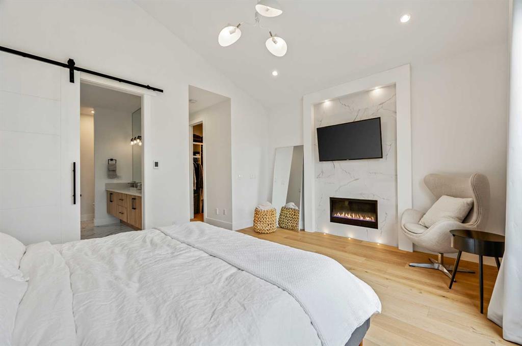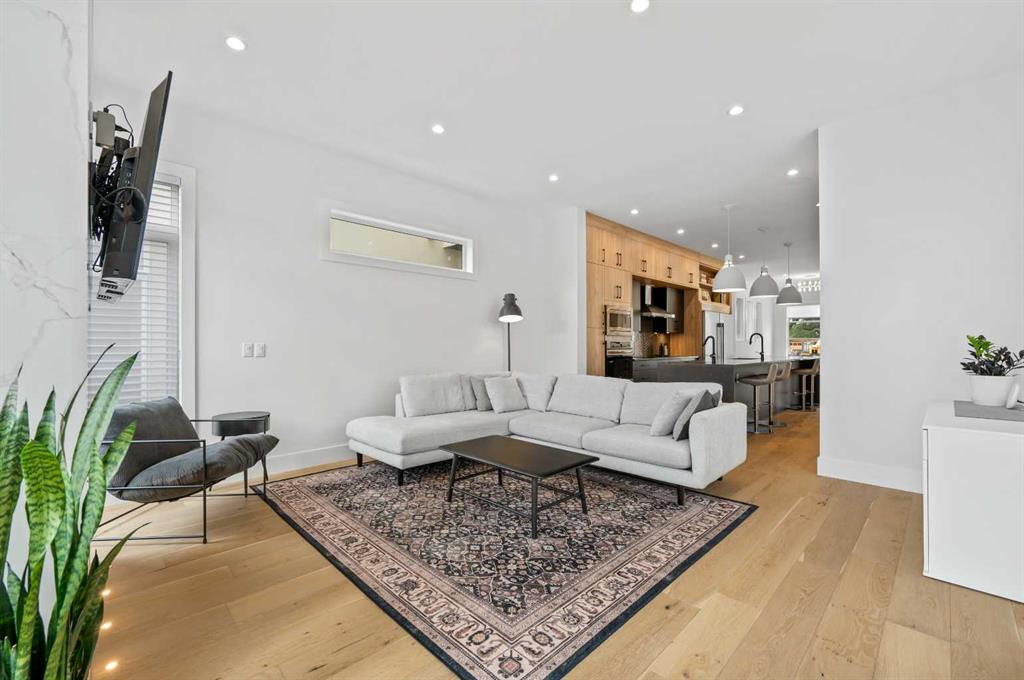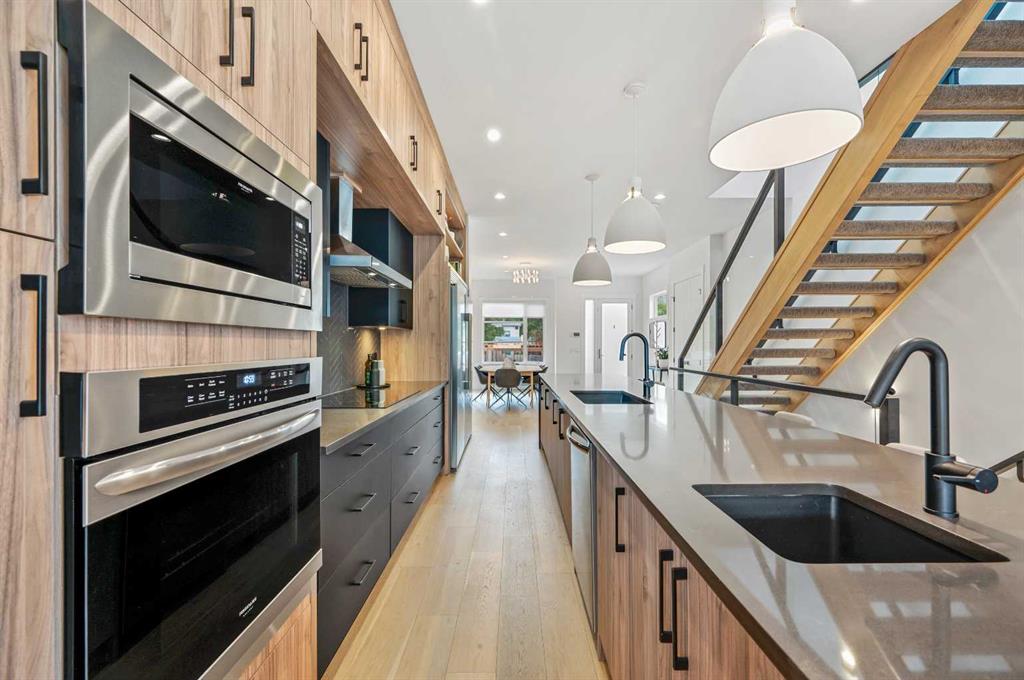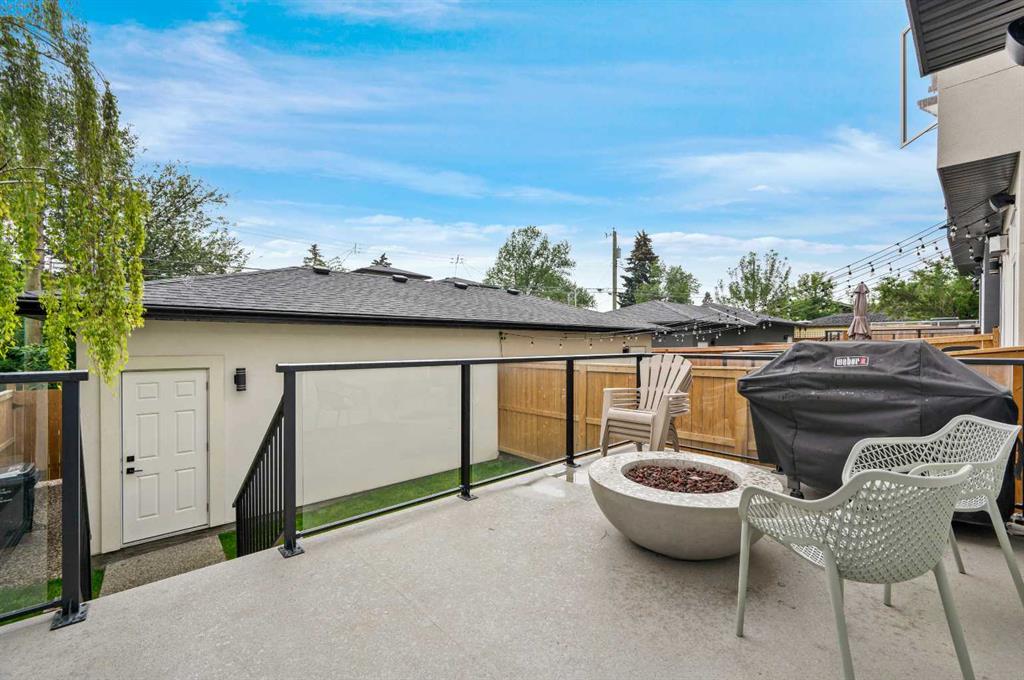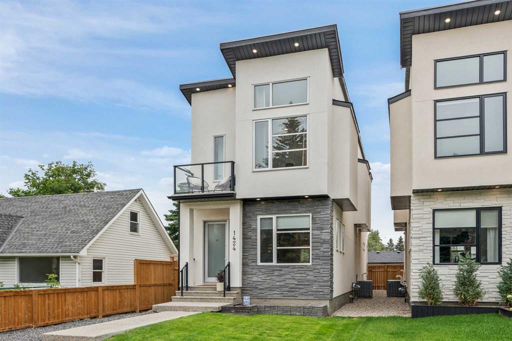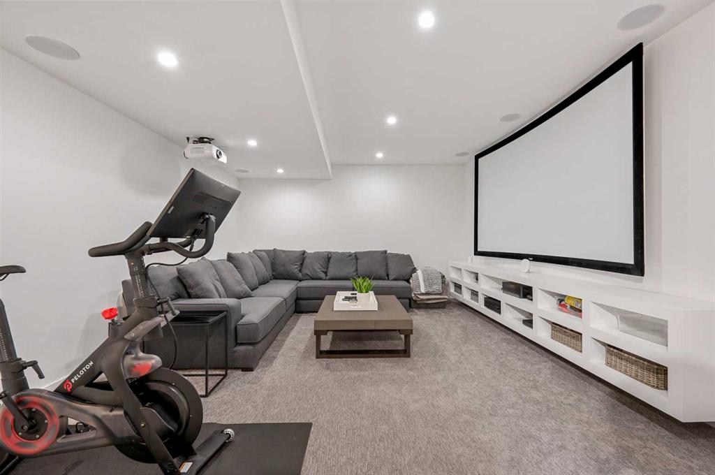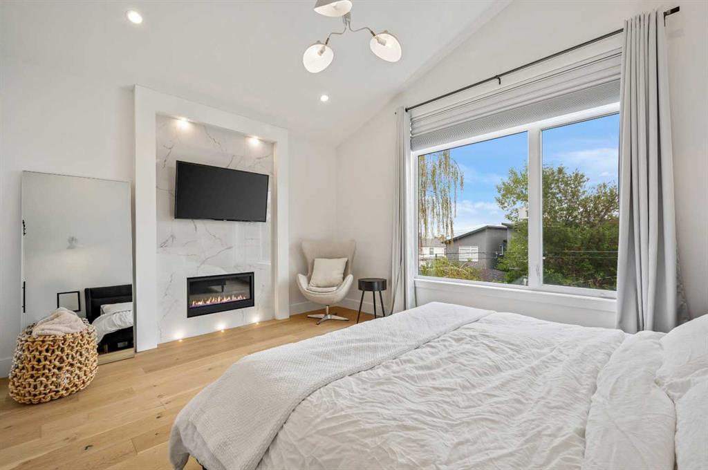 Upscale ‘Organic Modern’ detached infill in the vibrant community of Shaganappi, better-than-new, and truly move-in-ready with loads of added extras including central AC, insulated and heated garage, designer blinds, induction cook-top, media-room with projector & screen, wine area, landscaping, and more. Expertly crafted, this 2-storey home offers over 2,012 square feet of upgraded living space, designed with style and practicality in mind. The warm and welcoming open-concept floor-plan is brimming with natural light and offers spacious primary living spaces, 4 bedrooms, 3.5 bathrooms a fully developed basement and double detached garage. At the centre of the main floor, the chef’s kitchen boasts extensive ceiling height cabinetry, stainless-steel appliances with induction cook-top, built-in wall-oven and full-sized side-by-side fridge and freezer, massive island with waterfall counter feature, and ample bar seating for entertaining. The living room centres on a modern gas fireplace with a fully tiled feature wall and oversized windows on both sides. Highlighted by sleek glass railings, the wood-wrapped open-riser staircase leads to the second level. Upstairs, the second-floor hosts three generous-sized bedrooms, two full bathrooms and a private laundry room with modern tile, a built-in sink and stacked appliances. The stunning master retreat features a soaring vaulted ceiling, elegant gas fireplace, a massive walk-in closet with plentiful built-ins, and a private 5-pc ensuite bath with heated tile floors, walk-in steam shower, and a drop-in soaker tub. Downstairs, the basement is perfect for entertaining, with a huge rec room, a built-in media-wall with a 3D projector and screen, and a wet bar with an island and bar seating. Double detached garage is insulated, heated, with handy ceiling-mounted metal storage system. Complete with a security system and rough-in’s for central vac and in-floor basement heat this home truly has it all. The outdoor space is sure to wow and showcases exterior media speakers and a built-in Lunar Gas Fire Bowl making this a perfect place for entertaining both winter and summer! New home warranty includes building envelope and structural coverage. A solid investment in a thriving community! See Video Tour and book your showing today!