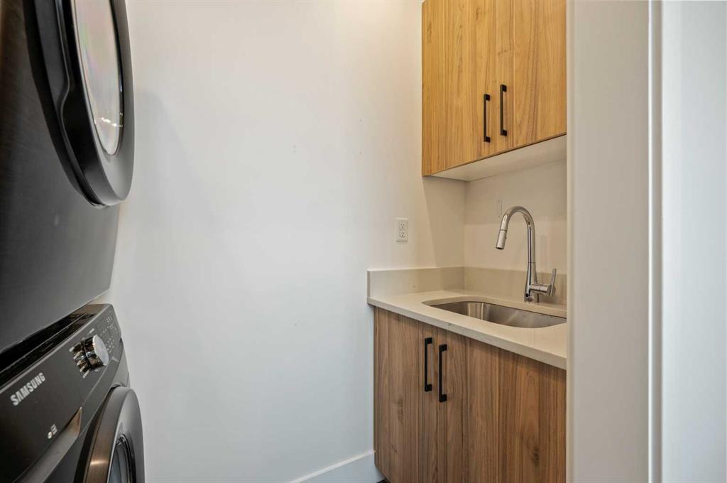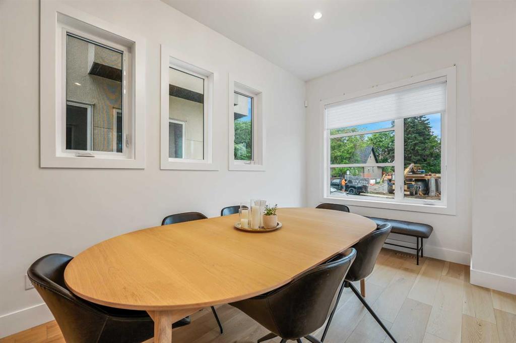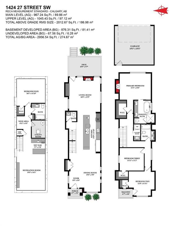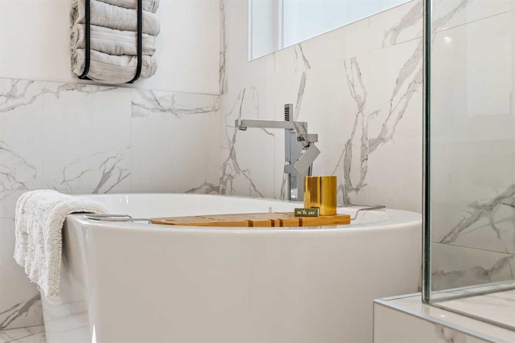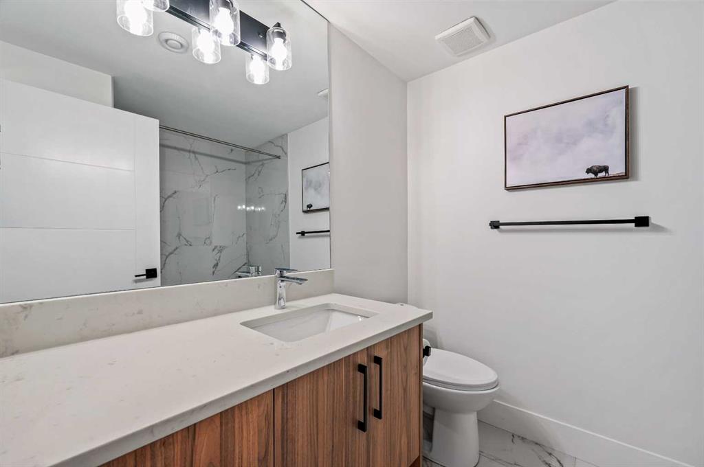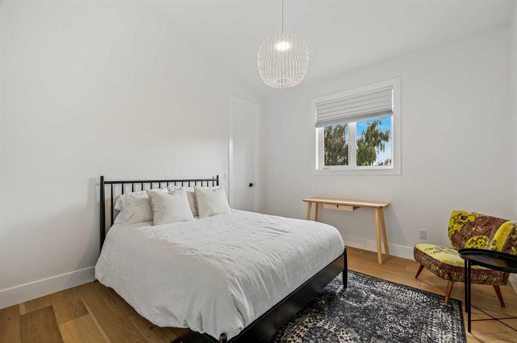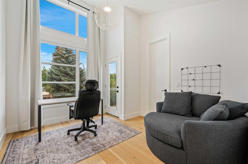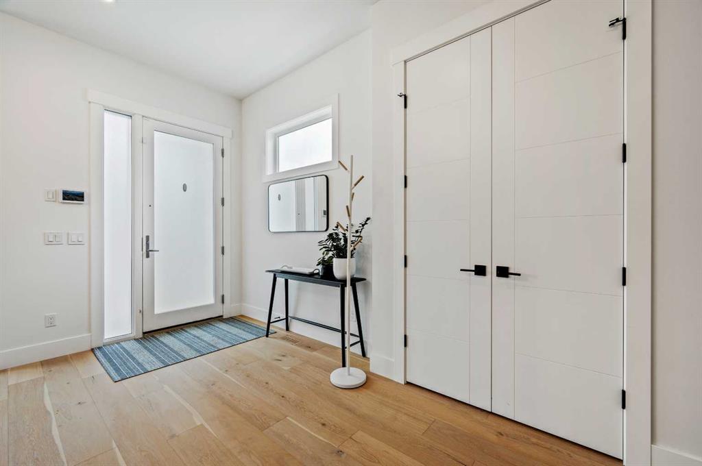 Upscale ‘Organic Modern’ detached infill in the vibrant community of Shaganappi, better-than-new, and truly move-in-ready with loads of added extras including central AC, insulated and heated garage, designer blinds, induction cook-top, media-room with projector & screen, wine area, landscaping, and more. Expertly crafted, this 2-storey home offers over 2,012 square feet of upgraded living space, designed with style and practicality in mind. The warm and welcoming open-concept floor-plan is brimming with natural light and offers spacious primary living spaces, 4 bedrooms, 3.5 bathrooms a fully developed basement and double detached garage. At the centre of the main floor, the chef’s kitchen boasts extensive ceiling height cabinetry, stainless-steel appliances with induction cook-top, built-in wall-oven and full-sized side-by-side fridge and freezer, massive island with waterfall counter feature, and ample bar seating for entertaining. The living room centres on a modern gas fireplace with a fully tiled feature wall and oversized windows on both sides. Highlighted by sleek glass railings, the wood-wrapped open-riser staircase leads to the second level. Upstairs, the second-floor hosts three generous-sized bedrooms, two full bathrooms and a private laundry room with modern tile, a built-in sink and stacked appliances. The stunning master retreat features a soaring vaulted ceiling, elegant gas fireplace, a massive walk-in closet with plentiful built-ins, and a private 5-pc ensuite bath with heated tile floors, walk-in steam shower, and a drop-in soaker tub. Downstairs, the basement is perfect for entertaining, with a huge rec room, a built-in media-wall with a 3D projector and screen, and a wet bar with an island and bar seating. Double detached garage is insulated, heated, with handy ceiling-mounted metal storage system. Complete with a security system and rough-in’s for central vac and in-floor basement heat this home truly has it all. The outdoor space is sure to wow and showcases exterior media speakers and a built-in Lunar Gas Fire Bowl making this a perfect place for entertaining both winter and summer! New home warranty includes building envelope and structural coverage. A solid investment in a thriving community! See Video Tour and book your showing today!