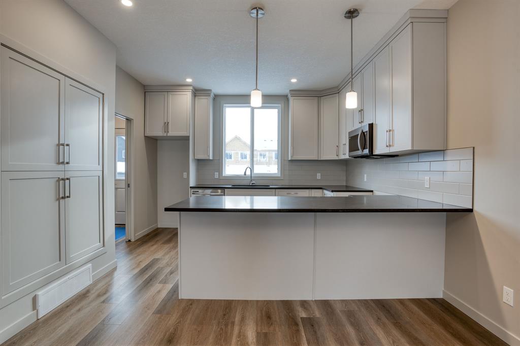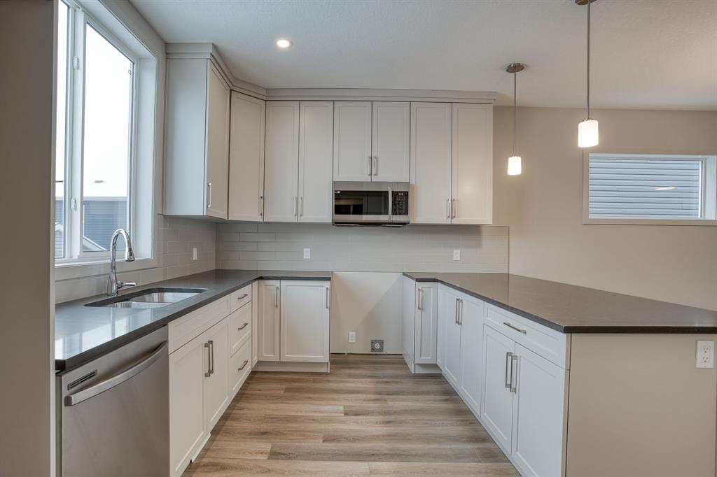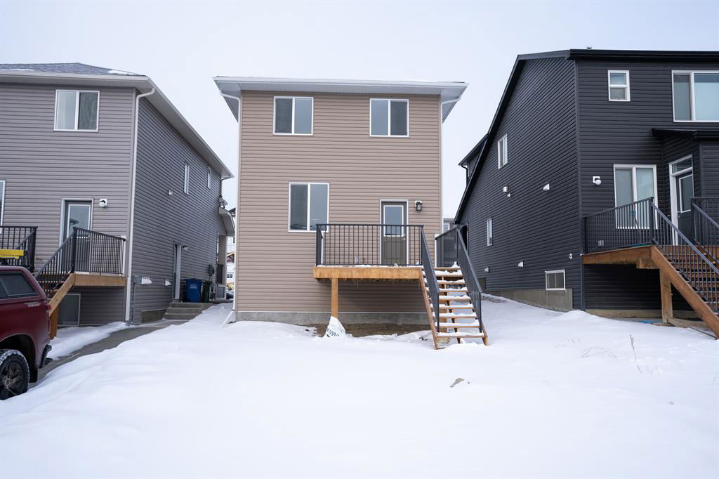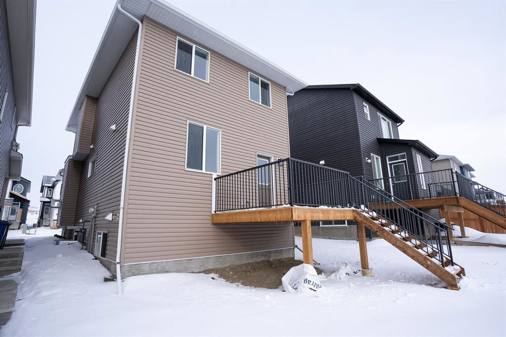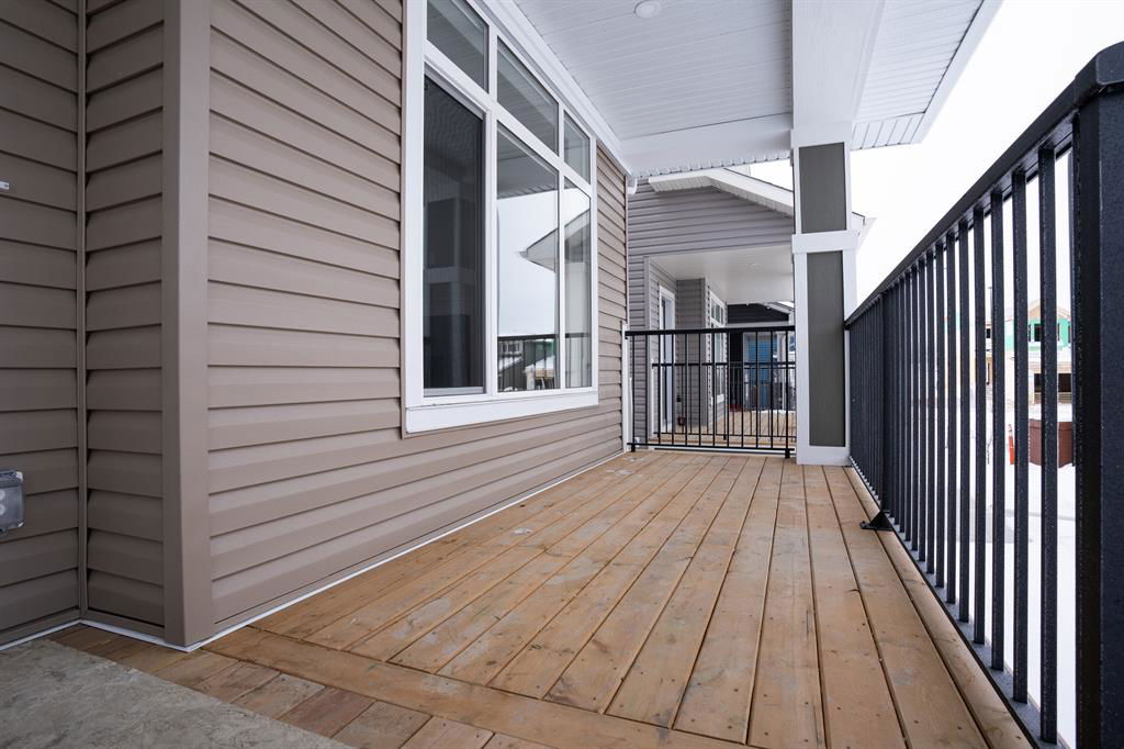 IMMEDIATE POSSESSION | STEPS TO PARKS & PATHS | NEW HOME WARRANTY | SEE VIRTUAL TOUR | The Willows in Cochrane is a boutique community offering small-town charm with big-city amenities. Best of all, your dollar really does go farther here! This Smart & Stylish brand-new 1498 ft2, 3-BR, 2.5 bath, 2-storey is an ideal family home. Welcoming oversized front porch greets you as you enter. Contemporary open-concept main floor includes bright and sunny front living room with cozy fireplace, opening onto dining area & spacious kitchen complete with full-height cabinets, soft close drawers/doors, quartz counters, undermount sink, 4 S/S appliances and convenient built-in wall pantry. Back mud room with custom wood shelving will keep things neat and tidy and opens onto spacious deck & yard. Upper level includes roomy master retreat with more than enough room for a king bed, well-appointed 3-pce ensuite with walk-in shower, full-size walk-in closet with built-in wood shelving convenient laundry area with room for side-by-side washer and dryer, 4-pce bath with tub-shower & two additional generously sized bedrooms. Unspoiled basement with R/I plumbing. Double gravel garage pad at rear. Pay attention to the details Janssen Homes delivers which differentiates it from the rest! See virtual tour for detailed interior look. Upgraded features include: 9’main-floor walls, lacquered railings & metal spindles, living room gas fireplace, luxury vinyl plank flooring throughout main level, tile in laundry & upper baths, full height kitchen cabinets with soft close doors/drawers & full extension glides, quartz counters, undermount sink plus 4 S/S appliance package. Upper baths also have quartz tops & undermount sinks. Site-built wood shelves. LoE Argon slider windows, R-50 attic insulation, high efficient furnace w/programmable thermostat & drip humidifier, tankless hot water “on-demand” system, R/I plumbing in basement. Covered porch at front, finished deck at back w/aluminum railing & steps to grade. Warranty includes 1 yr comprehensive, 2 yrs heating, electric, plumbing, 5 yrs building envelope, 10 yrs structural.