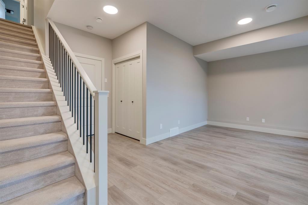 ***Immediate Possession***Ravines of Royal Oak by Janssen Homes offers unmatched quality & design, located on the most scenic & tranquil of sites in the mature NW community of Royal Oak. This 3BR, 2.5 bath 1,883sf (1,746RMS) 3-storey townhouse with double attached garage boasts superior finishings. Entry level offers large flex space ideal for office, media-room, gym, or storage. Main floor open-concept-plan features grand kitchen with full-height cabinets, soft close doors/drawers & full extension glides, quartz counters, undermount sink, plus 4 S/S appliances with decorative chimney hood fan & convenient island opening onto both dining area & spacious living room with access to huge 8’ x 16’ balcony. Laundry room along with 2-pce bath completes the ultra-functional main floor. Upper level includes roomy master retreat, well-appointed 3-pce ensuite with tile flooring & walk-in shower, walk-in closet with an additional closet for extra convenience, an additional 4-pce bath, & two more bedrooms. Double garage completes the package. Ravines of Royal Oak goes far beyond typical townhome offerings; special attention has been paid to utilizing high quality, maintenance free, materials to ensure long-term, worry-free living. Acrylic stucco with underlying ‘Rainscreen’ protection, stone, & Sagiwall vertical planks (ultra-premium European siding) ensure not only that the project will be one of the most beautiful in the city, but that it will stand the test of time with low maintenance costs. Other premium features include triple-pane, argon filled low-e, aluminum clad windows, premium grade cabinetry with quartz countertops throughout, 9′ wall height on all levels, premium Torlys LV Plank flooring, 80 gal hot water tank, a fully insulated & drywalled attached garage that includes a hose bib & smart WiFi door opener, among other features. Condo fees include building insurance, exterior building maintenance & long-term reserve/replacement fund, road & driveway maint., landscaping maint., driveway & sidewalk snow removal, landscaping irrigation, street & pathway lighting, garbage/recycling/organics service. Bordered by ponds, natural ravine park, walking paths & only minutes to LRT station, K-9 schools, YMCA & 4 major shopping centres. A solid investment – visit today!