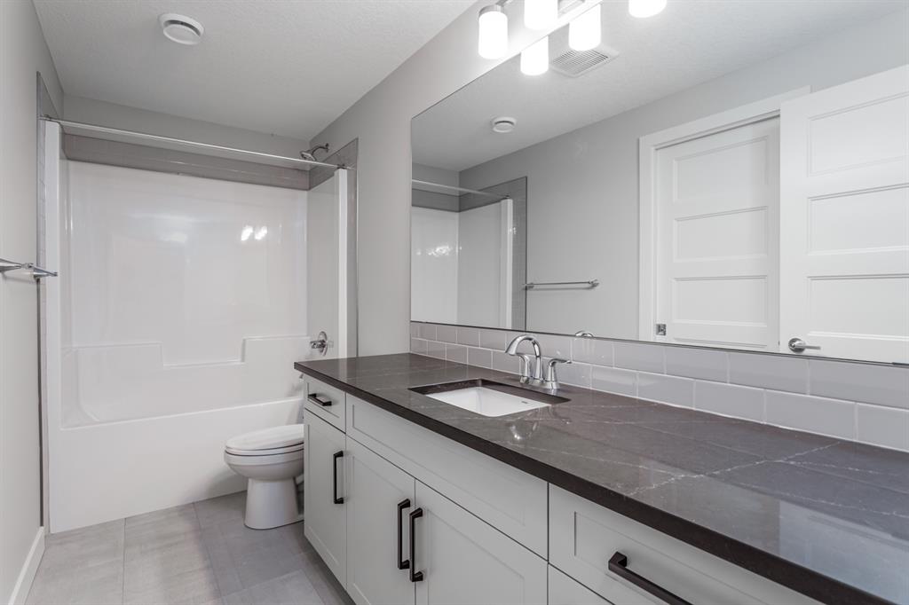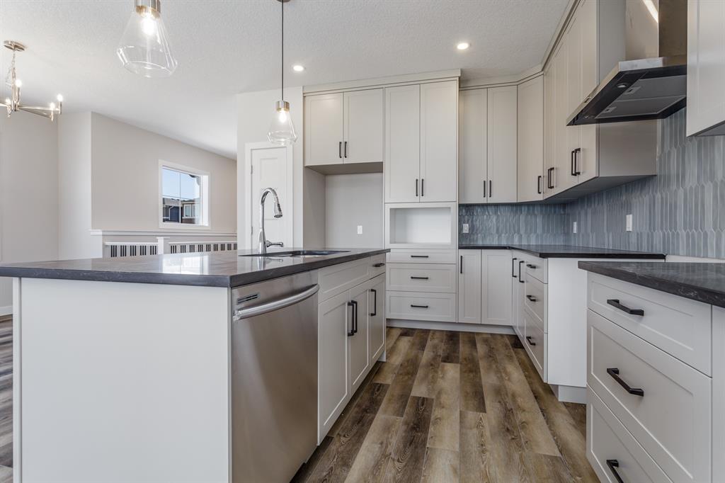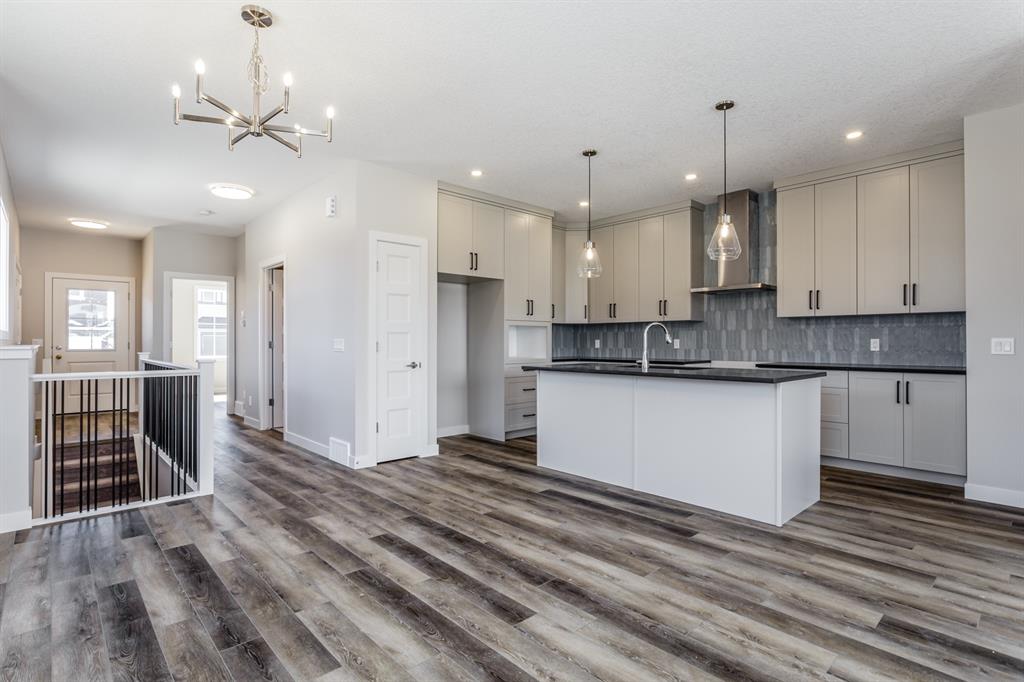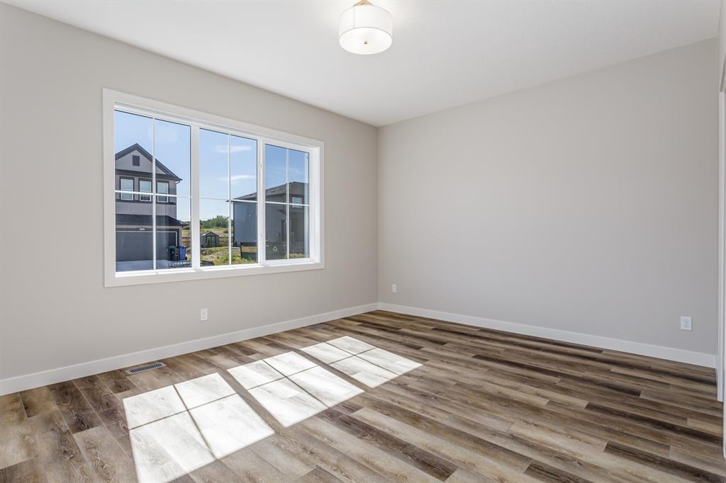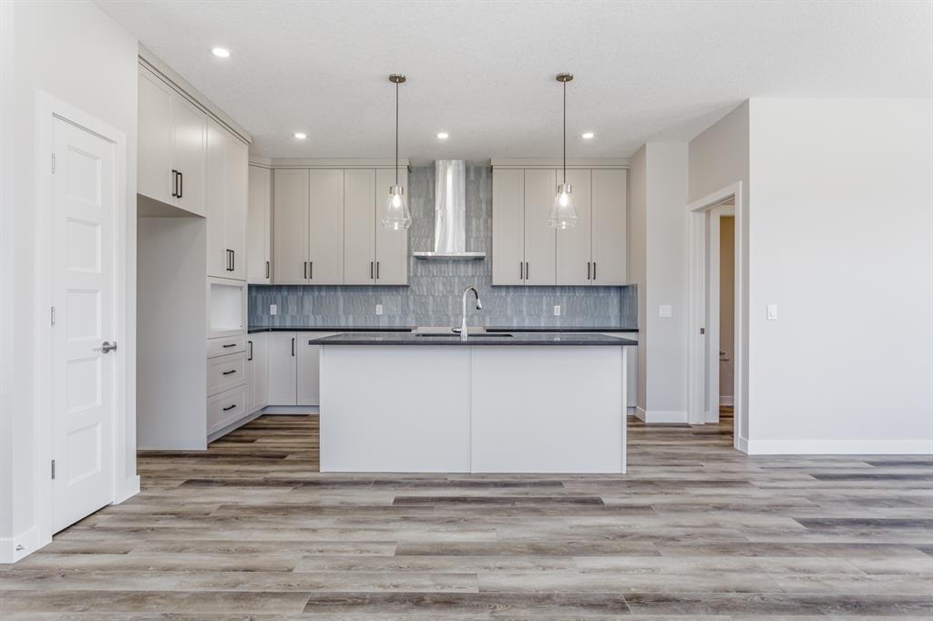 Comfortable Bungalow living in the Willows of Cochrane! Enjoy the freedom that comes with main-floor living along with the extra space of a fully developed lower level. This brand-new Janssen 3-BR, 2.5 bath home offers over 2,000 sq.ft. of total developed living space on two levels; designed with numerous upgrades for the discerning buyer. Open concept main-floor features 9’ ceilings, Luxury Vinyl & tile flooring. Chef’s kitchen with full-height custom painted white cabinets, crown mouldings, soft close doors/drawers & full extension glides, Quartz counters, upgraded backsplash, signature stainless steel chimney hood fan, undermount sink plus 4 S/S appliances opening onto dining space & spacious living room with access to huge 18’ x 10’ back deck overlooking yard. Generous main-floor master BR complete with walk-in closet, 5-pce ensuite, dual sinks, 5’x3’ walk-in shower with handy bench. Full-size laundry room completes the fully functional main level. Lower level offers wide-open rec-room, two generous sized BR’s, 4-pce bath, extra laundry hook-ups & storage. Family-owned Janssen Homes has been building award-winning homes for over 50-years & delivers another finely crafted design. Upgraded features include: 9’main & lower floor ceilings with knock down Spantex, Maple railings & metal spindles, Tile in foyer/mudroom/laundry/ensuite bath. LoE Argon slider windows, R-50 attic insulation, high-efficient furnace w/programmable thermostat & drip humidifier, HRV, 50 gal hot water heater. Custom bench in back mud-room. 180 sq.ft. deck at back w/aluminum railing, & steps to grade. Double gravel parking pad. Add a 20’ x 20’ double garage for an additional $20,000. Warranty includes: 1 yr comprehensive, 2 yrs heating, electric, plumbing, 5 yrs building envelope water protection, 10 yrs structural.