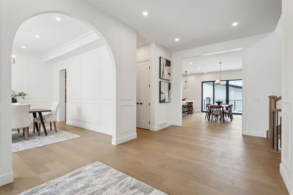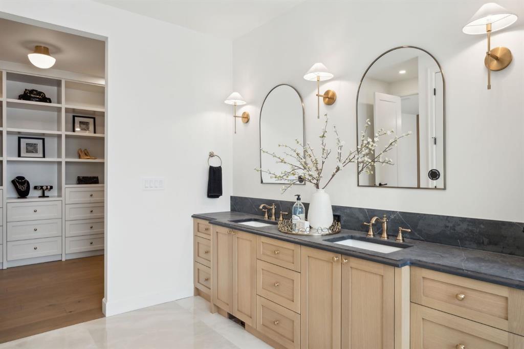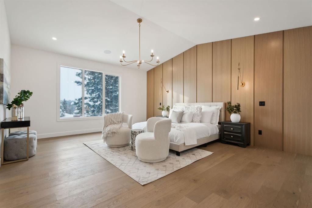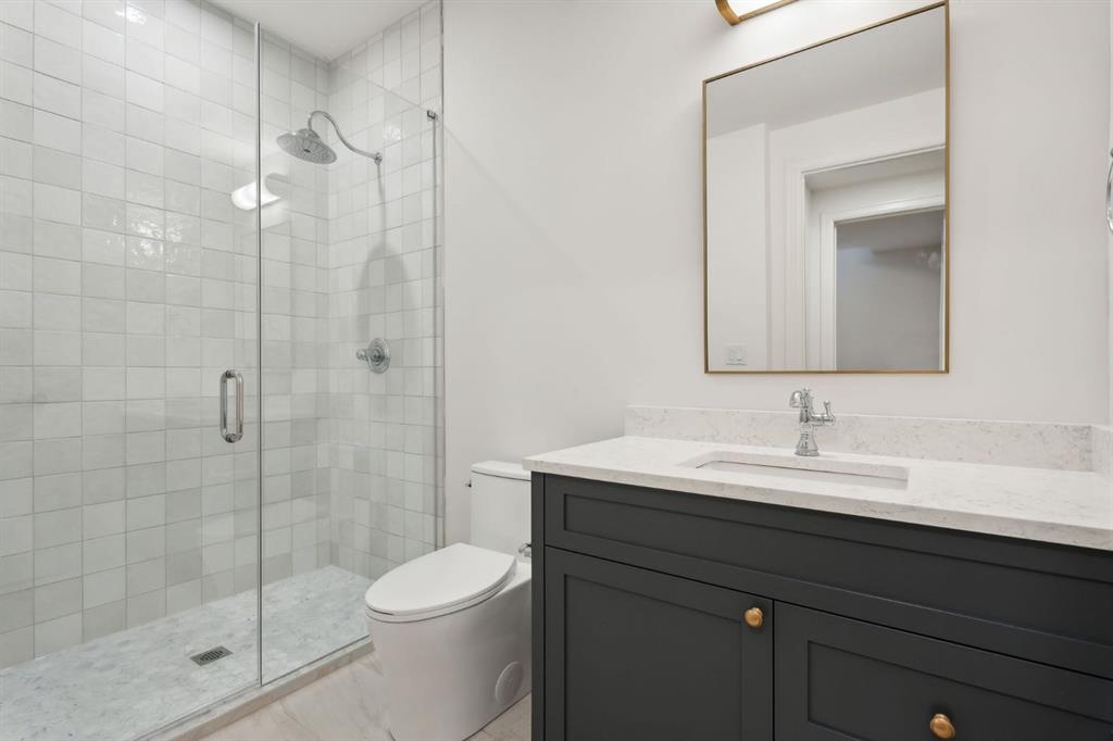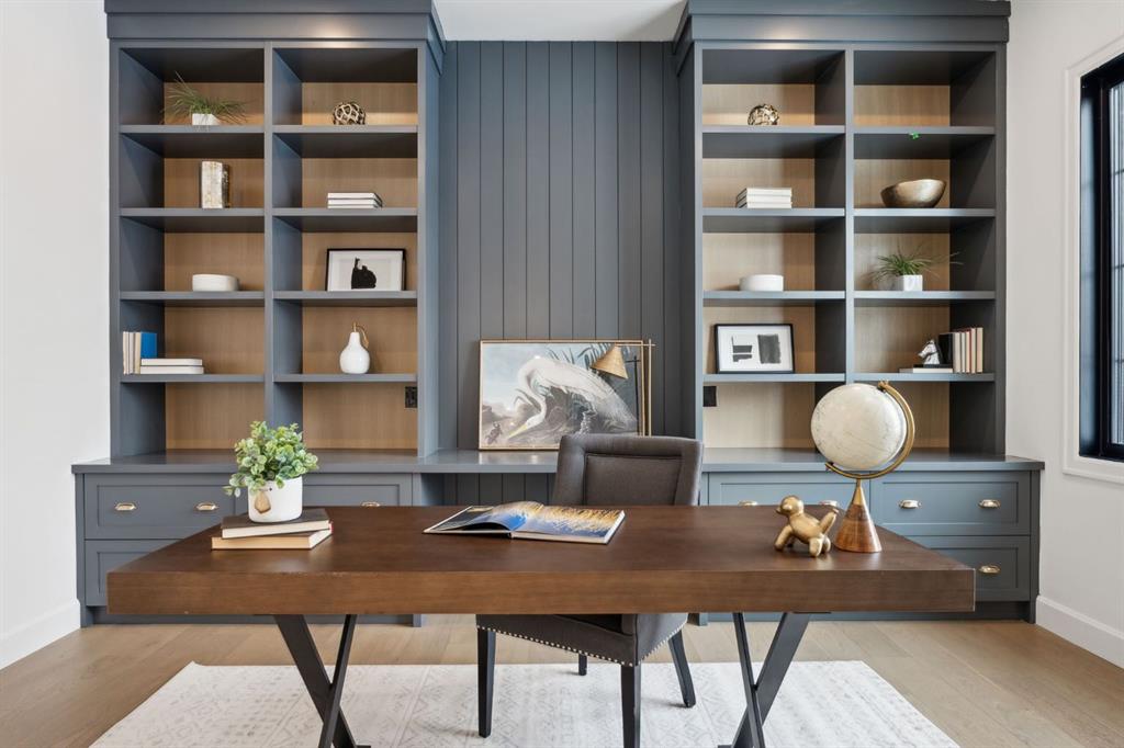 The fully developed basement offers an additional (5th) bedroom, 3-piece bath, recreation room with wet-bar & built-ins, a dedicated media room, and inspiring home gym enclosed by 10-mil glass and a mirrored wall.