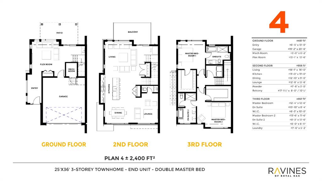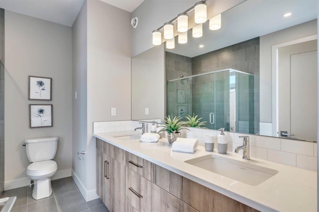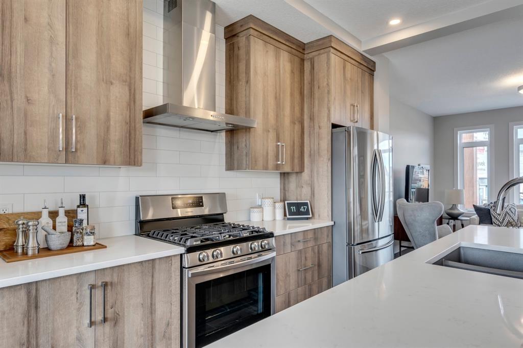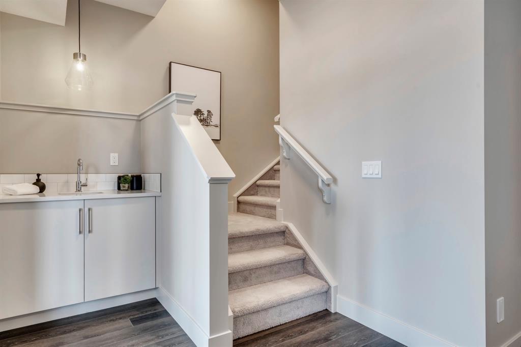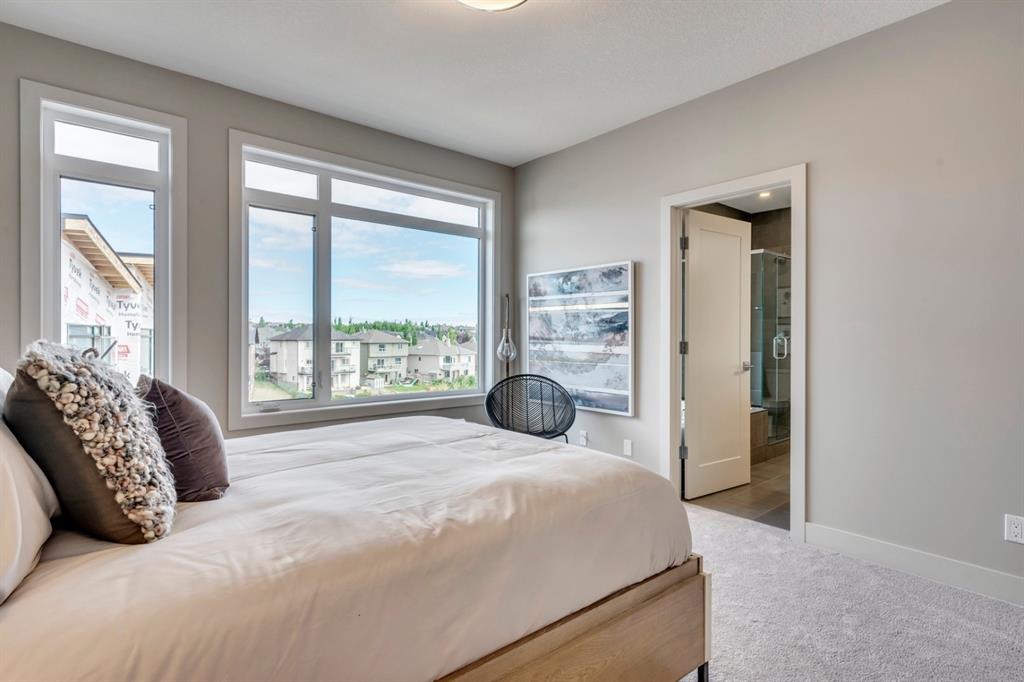 ***Quick Possession***Ravines of Royal Oak by Janssen Homes offers unmatched quality & design, located on the most scenic & tranquil of sites in the mature NW community of Royal Oak. This dual master (2BR), 2.5 bath 2,400sf (2,132RMS) 3-storey townhouse with double attached garage boasts superior finishings. Entry level offers large flex space ideal for office, media-room, gym, or storage. Main floor open-concept-plan features grand kitchen with full-height cabinets, soft close doors/drawers & full extension glides, quartz counters, undermount sink, plus 4 S/S appliances with decorative chimney hood fan & convenient island opening onto both dining area, & spacious living room with access to huge 17’x8’’ balcony. Additional bonus room for office, studio, or lounging area along with 2-pce bath completes the ultra-functional main floor. Upper level includes two roomy master retreats, both with well-appointed 4 & 5pce ensuites complete with soaker tubs, walk-in tile showers, & tile flooring. Huge walk-in closets with site-built shelving & laundry room with side-by-side washer/dryer & sink completes the upper level . Double garage with extra parking on driveway adds the final touch. Ravines of Royal Oak goes far beyond typical townhome offerings; special attention has been paid to utilizing high quality, maintenance free, materials to ensure long-term, worry-free living. Acrylic stucco with underlying ‘Rainscreen’ protection, stone, & Sagiwall vertical planks (ultra-premium European siding) ensure not only that the project will be one of the most beautiful in the city, but that it will stand the test of time with low maintenance costs. Other premium features include triple-pane, argon filled low-e, aluminum clad windows, premium grade cabinetry with quartz countertops throughout, 9′ wall height on all levels, premium Torlys LV Plank flooring, 80 gal hot water tank, a fully insulated & drywalled attached garage that includes a hose bib & smart WiFi door opener, among other features. Condo fees include building insurance, exterior building maintenance & long-term reserve/replacement fund, road & driveway maint., landscaping maint., driveway & sidewalk snow removal, landscaping irrigation, street & pathway lighting, garbage/recycling/organics service. Bordered by ponds, natural ravine park, walking paths & only minutes to LRT station, K-9 schools, YMCA & 4 major shopping centres. A solid investment – visit today!