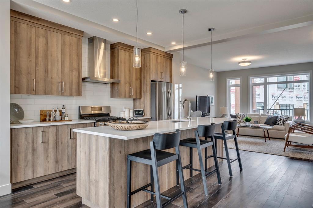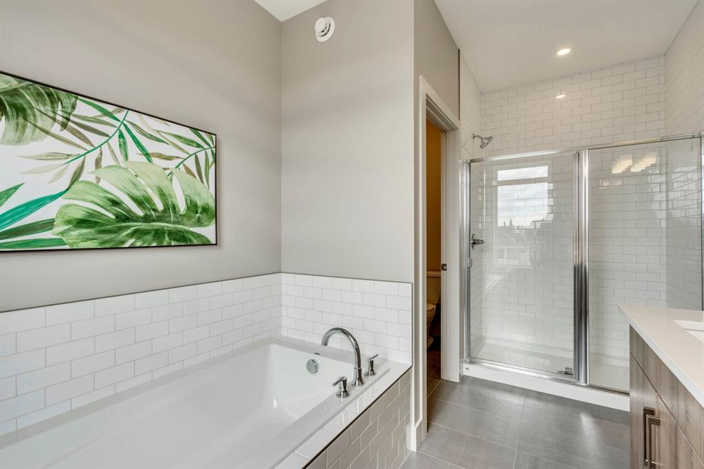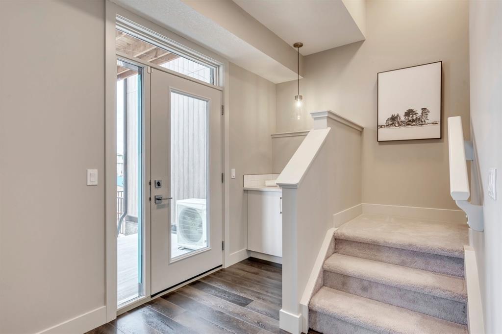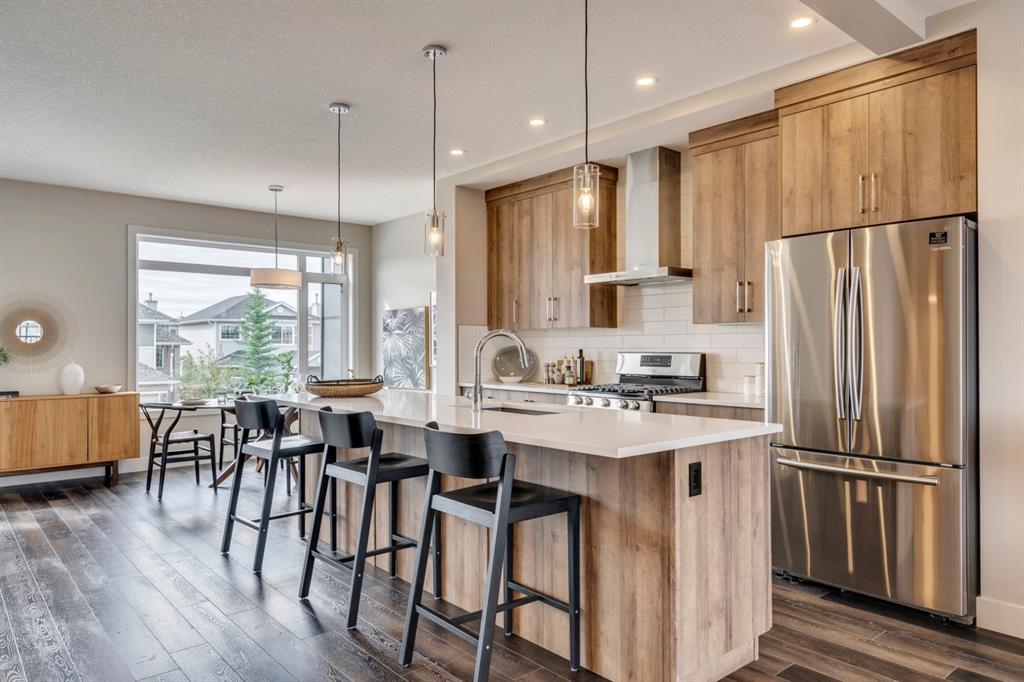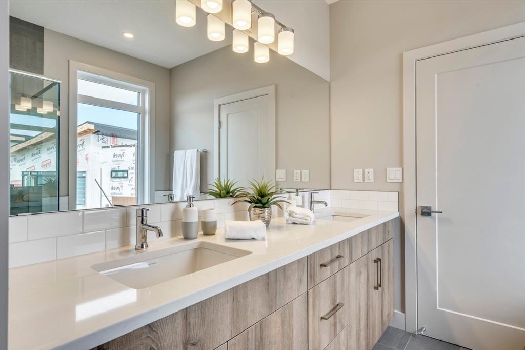 ***Quick Possession***Ravines of Royal Oak by Janssen Homes offers unmatched quality & design, located on the most scenic & tranquil of sites in the mature NW community of Royal Oak. This dual master (2BR), 2.5 bath 2,400sf (2,132RMS) 3-storey townhouse with double attached garage boasts superior finishings. Entry level offers large flex space ideal for office, media-room, gym, or storage. Main floor open-concept-plan features grand kitchen with full-height cabinets, soft close doors/drawers & full extension glides, quartz counters, undermount sink, plus 4 S/S appliances with decorative chimney hood fan & convenient island opening onto both dining area, & spacious living room with access to huge 17’x8’’ balcony. Additional bonus room for office, studio, or lounging area along with 2-pce bath completes the ultra-functional main floor. Upper level includes two roomy master retreats, both with well-appointed 4 & 5pce ensuites complete with soaker tubs, walk-in tile showers, & tile flooring. Huge walk-in closets with site-built shelving & laundry room with side-by-side washer/dryer & sink completes the upper level . Double garage with extra parking on driveway adds the final touch. Ravines of Royal Oak goes far beyond typical townhome offerings; special attention has been paid to utilizing high quality, maintenance free, materials to ensure long-term, worry-free living. Acrylic stucco with underlying ‘Rainscreen’ protection, stone, & Sagiwall vertical planks (ultra-premium European siding) ensure not only that the project will be one of the most beautiful in the city, but that it will stand the test of time with low maintenance costs. Other premium features include triple-pane, argon filled low-e, aluminum clad windows, premium grade cabinetry with quartz countertops throughout, 9′ wall height on all levels, premium Torlys LV Plank flooring, 80 gal hot water tank, a fully insulated & drywalled attached garage that includes a hose bib & smart WiFi door opener, among other features. Condo fees include building insurance, exterior building maintenance & long-term reserve/replacement fund, road & driveway maint., landscaping maint., driveway & sidewalk snow removal, landscaping irrigation, street & pathway lighting, garbage/recycling/organics service. Bordered by ponds, natural ravine park, walking paths & only minutes to LRT station, K-9 schools, YMCA & 4 major shopping centres. A solid investment – visit today!