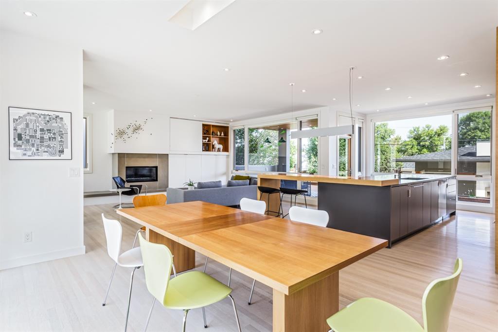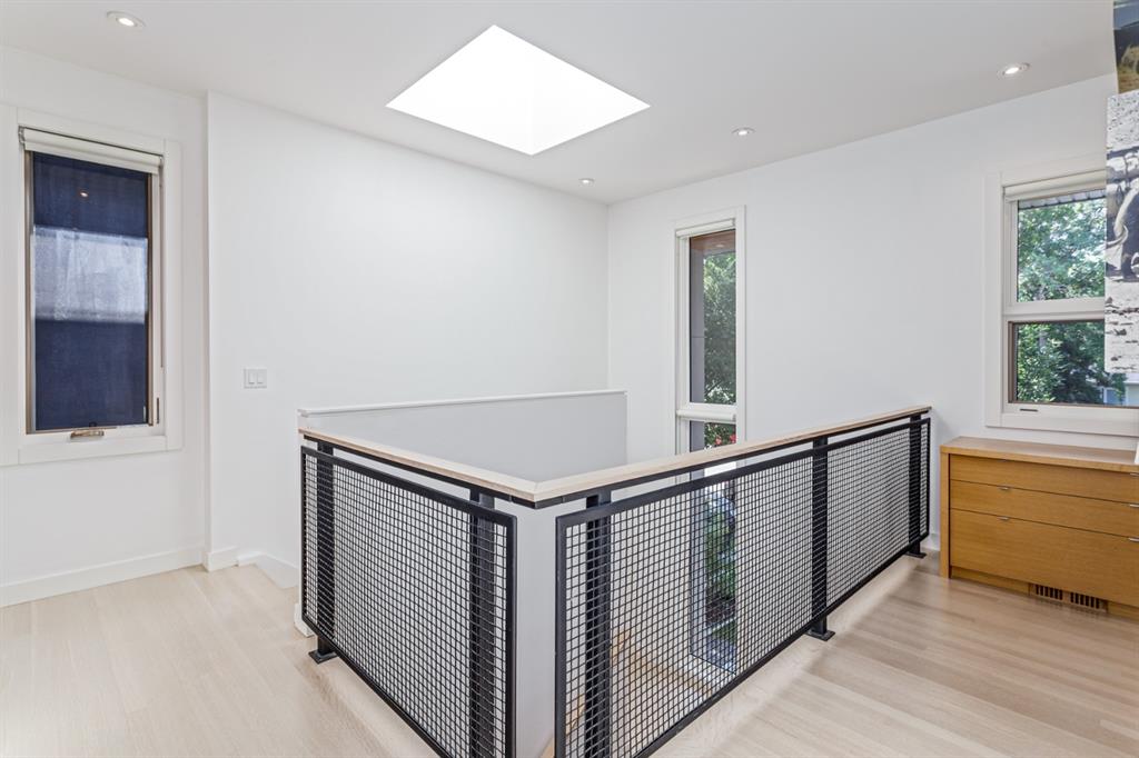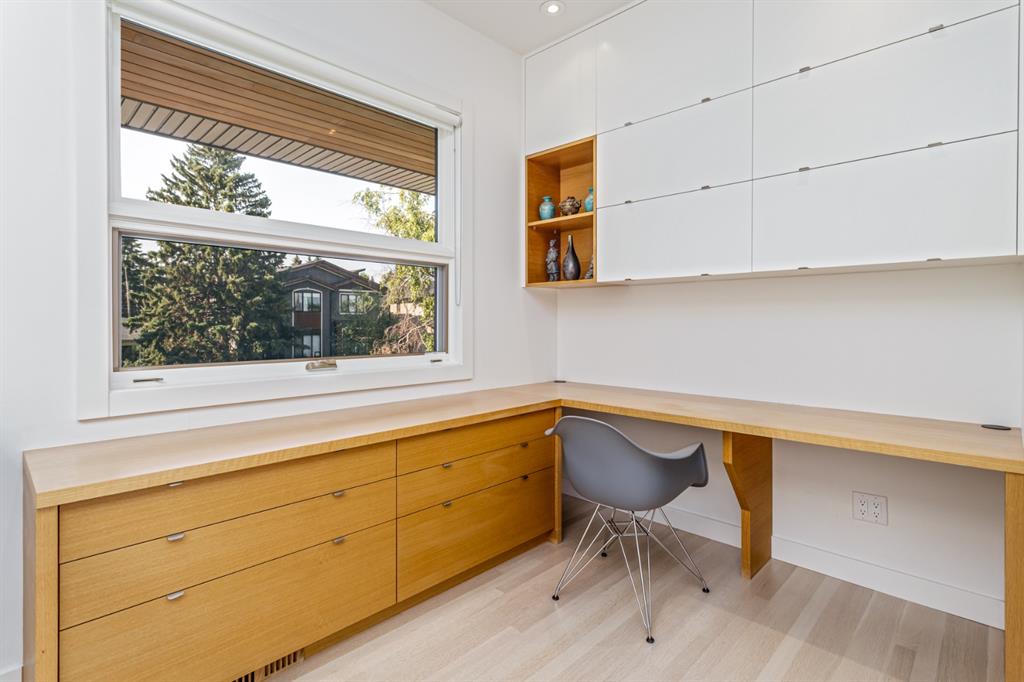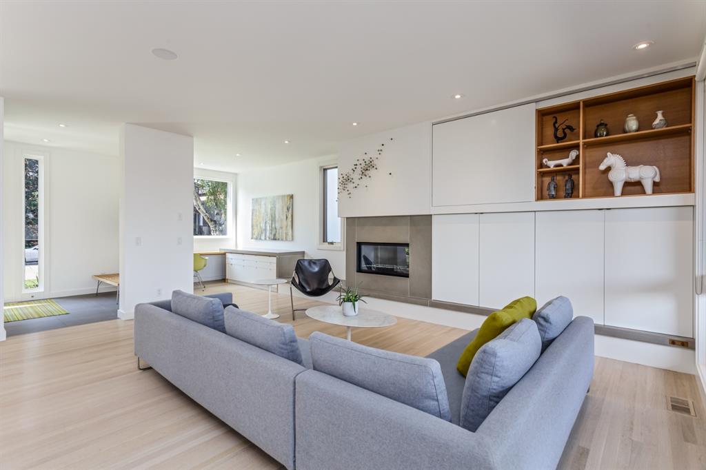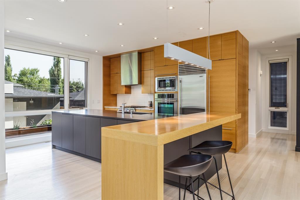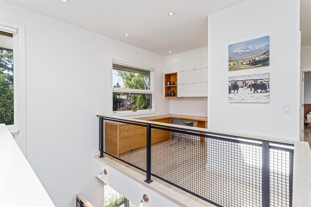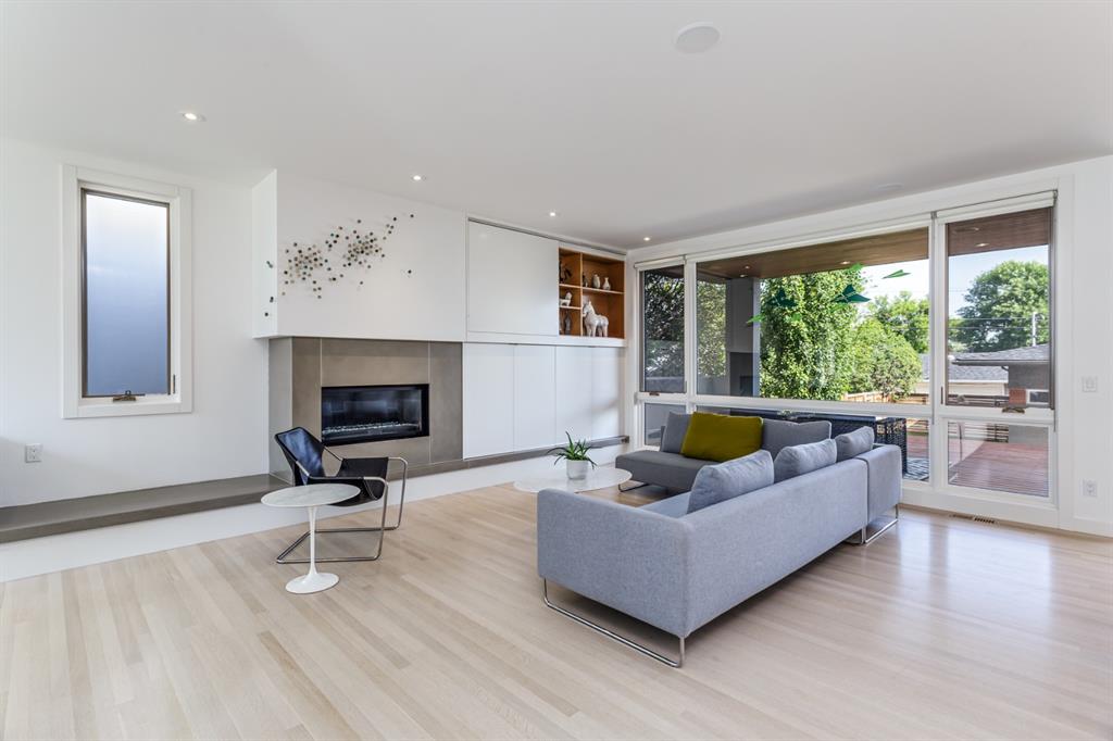 Ideal family home located in the desirable NW community of Mount Pleasant on a picturesque tree-lined street, steps from the paths, parks, & serenity of Confederation Park. Completed by award-winning Alloy Homes – the “Grey House” project, as it is known, “… is a wide-lot infill project near a large park designed to be bright and airy throughout the year …” Situated on a full 50’ wide x 120’ deep lot, this 3+1-bedroom, 3.5 bath, two-storey home with over 3,500 sq.ft. of developed space offers ample room for both indoor & outdoor living. Designed for the discerning consumer with attention to detail in mind, this home offers a rich combination of natural woods, stone, glass & metal woven together in a contemporary expression. Main-level features open-concept plan with floor-to-ceiling windows, site-finished oak flooring, centered around an inviting kitchen fitted with the finest of appliances, wall of rift-cut cabinets, quartz covered island, & breakfast bar. Living area features a creative wall of built-ins, signature linear fireplace with decorative concrete accents siding onto a smart main-floor office area with ample built-ins of its own. The cedar covered back deck offers seamless indoor-outdoor living with access to professionally landscaped yard, vegetable garden, open grass play space & patio, complete with natural wood-burning fireplace. Rear mudroom with lockers & smart storage ensures everything will be in its place. Open-riser wood stairs with decorative iron railings lead to the upper level featuring second fully-fitted office space, a generously sized master retreat with covered balcony, walk-in closet, skylight, ample built-ins, luxurious 5-piece ensuite bath, two additional bedrooms, 4-pce bath, & laundry. Lower level features wide-open living area wired for surround-sound, built-in wet-bar, extra-large fitness room with rubber flooring, 4th bedroom, 4-pce bath & storage area – all with in-floor heating. Triple garage with radiant heat completes the package. A solid investment – book your private viewing today!