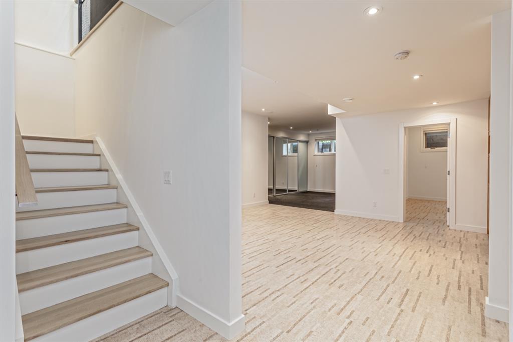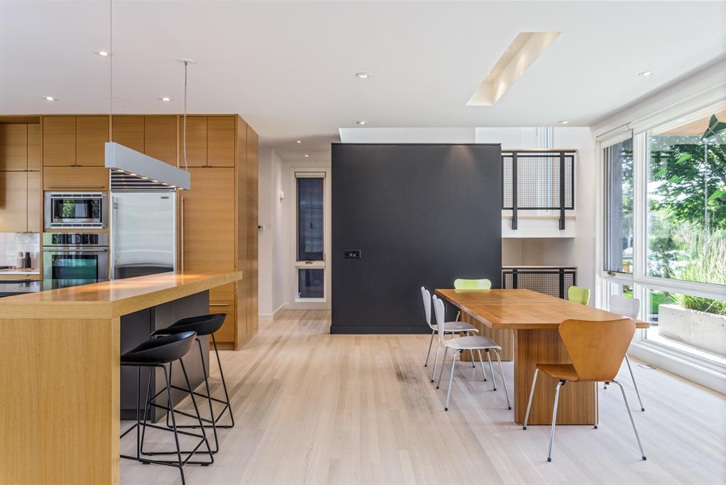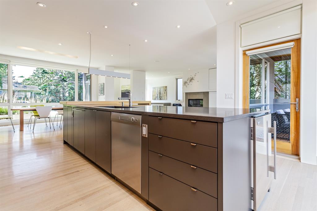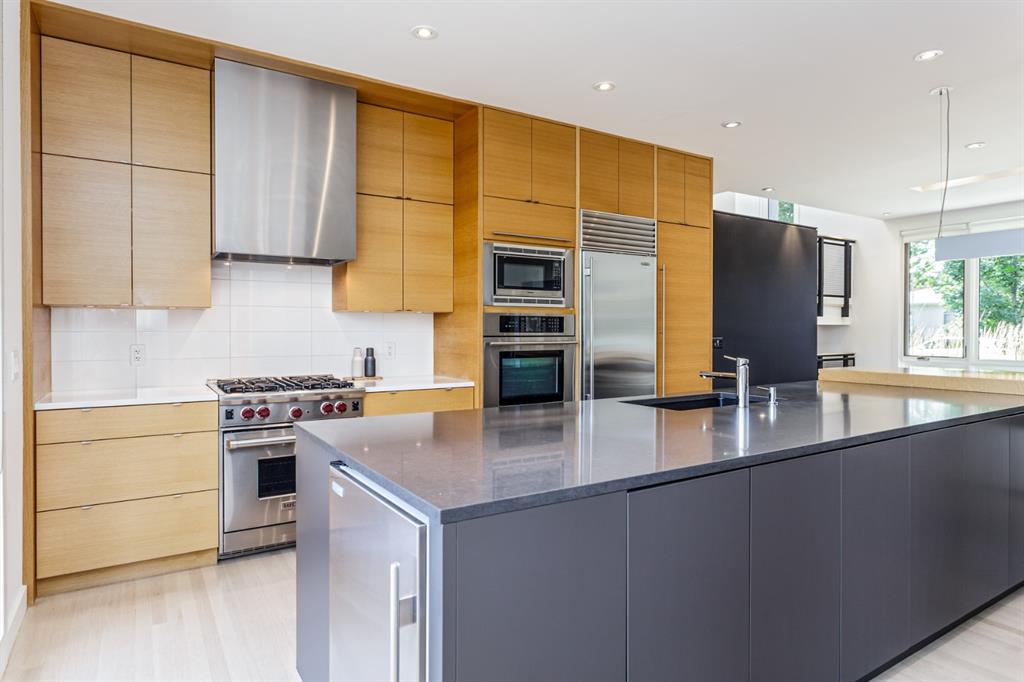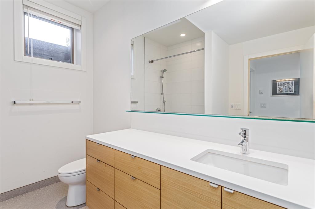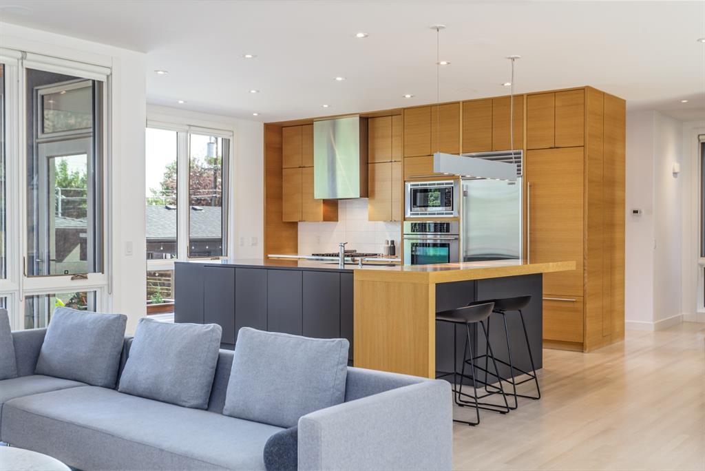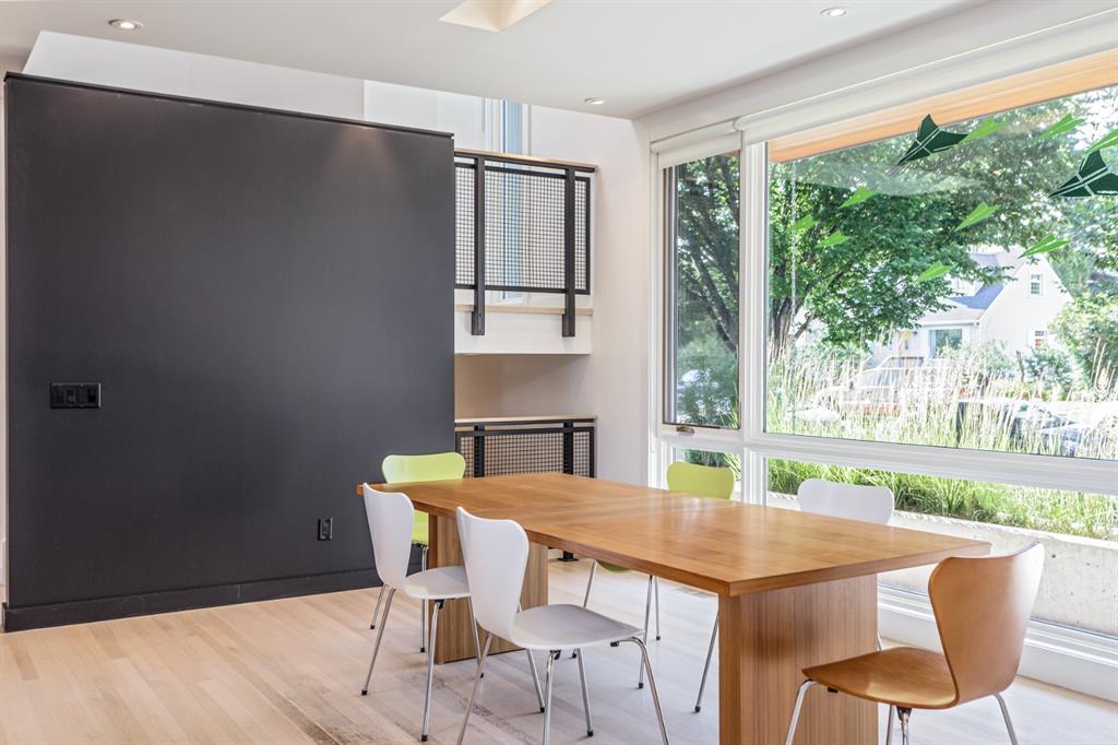 Ideal family home located in the desirable NW community of Mount Pleasant on a picturesque tree-lined street, steps from the paths, parks, & serenity of Confederation Park. Completed by award-winning Alloy Homes – the “Grey House” project, as it is known, “… is a wide-lot infill project near a large park designed to be bright and airy throughout the year …” Situated on a full 50’ wide x 120’ deep lot, this 3+1-bedroom, 3.5 bath, two-storey home with over 3,500 sq.ft. of developed space offers ample room for both indoor & outdoor living. Designed for the discerning consumer with attention to detail in mind, this home offers a rich combination of natural woods, stone, glass & metal woven together in a contemporary expression. Main-level features open-concept plan with floor-to-ceiling windows, site-finished oak flooring, centered around an inviting kitchen fitted with the finest of appliances, wall of rift-cut cabinets, quartz covered island, & breakfast bar. Living area features a creative wall of built-ins, signature linear fireplace with decorative concrete accents siding onto a smart main-floor office area with ample built-ins of its own. The cedar covered back deck offers seamless indoor-outdoor living with access to professionally landscaped yard, vegetable garden, open grass play space & patio, complete with natural wood-burning fireplace. Rear mudroom with lockers & smart storage ensures everything will be in its place. Open-riser wood stairs with decorative iron railings lead to the upper level featuring second fully-fitted office space, a generously sized master retreat with covered balcony, walk-in closet, skylight, ample built-ins, luxurious 5-piece ensuite bath, two additional bedrooms, 4-pce bath, & laundry. Lower level features wide-open living area wired for surround-sound, built-in wet-bar, extra-large fitness room with rubber flooring, 4th bedroom, 4-pce bath & storage area – all with in-floor heating. Triple garage with radiant heat completes the package. A solid investment – book your private viewing today!