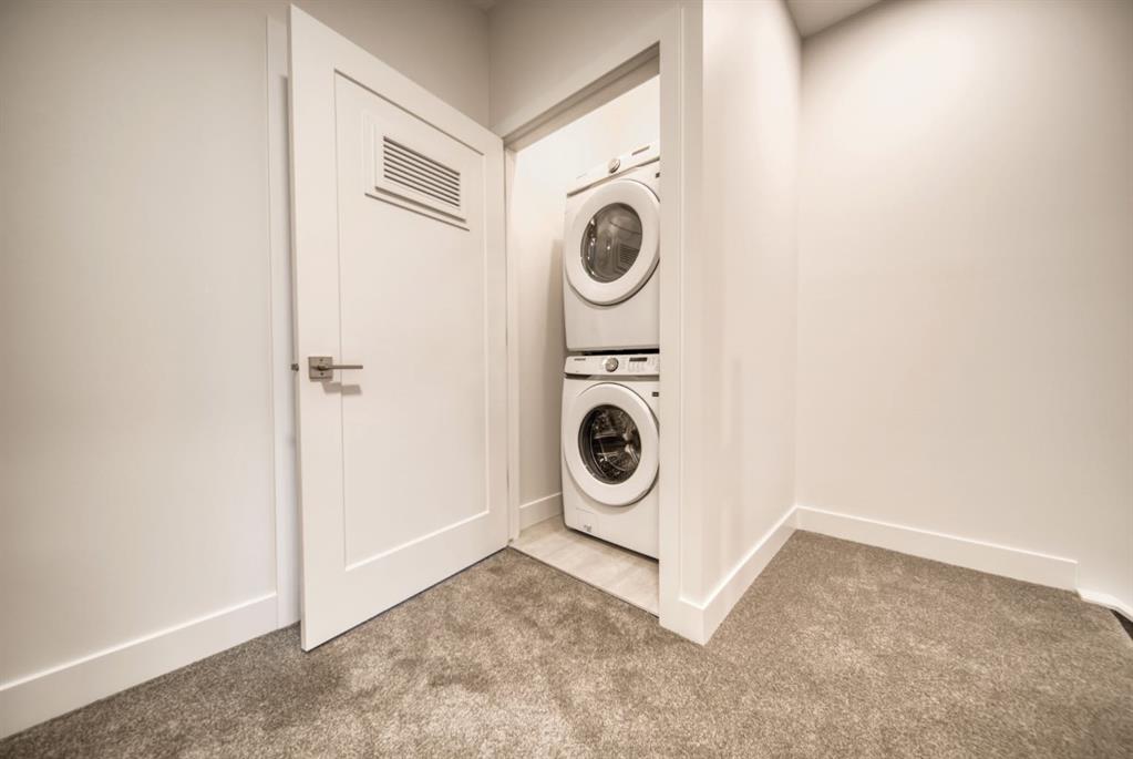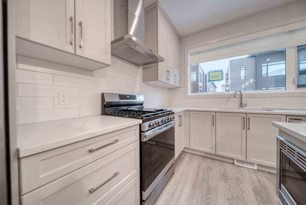 Ravines of Royal Oak by Janssen Homes offers unmatched quality & design, located on the most scenic & tranquil of sites in the mature NW community of Royal Oak. This dual primary (2BR), 2.5 bath 1,442sf 3-storey, townhouse with single attached garage boasts superior finishings. Entry level offers convenient flex space ideal for office, media-room, gym, or storage. Main floor open-concept-plan features end kitchen option with full-height cabinets, soft close doors/drawers & full extension glides, quartz counters, undermount sink, plus 4 S/S appliances opening onto dining area & living room with access to balcony. Upper level includes two roomy master retreats, both with well-appointed 4-pce ensuites & tile flooring. Ample closet space with site-built shelving & separate laundry space . Single attached garage adds the final touch. Ravines of Royal Oak goes far beyond typical townhome offerings; special attention has been paid to utilizing high quality, maintenance free, materials to ensure long-term, worry-free living. Acrylic stucco with underlying ‘Rainscreen’ protection, stone, & Sagiwall vertical planks (ultra-premium European siding) ensure not only that the project will be one of the most beautiful in the city, but that it will stand the test of time with low maintenance costs. Other premium features include triple-pane, argon filled low-e, aluminum clad windows, premium grade cabinetry with quartz countertops throughout, 9′ wall height on all levels, premium Torlys LV Plank flooring, 80 gal hot water tank, a fully insulated & drywalled attached garage that includes a hose bib & smart WiFi door opener, among other features. Condo fees include building insurance, exterior building maintenance & long-term reserve/replacement fund, road & driveway maint., landscaping maint., driveway & sidewalk snow removal, landscaping irrigation, street & pathway lighting, garbage/recycling/organics service. Bordered by ponds, natural ravine park, walking paths & only minutes to LRT station, K-9 schools, YMCA & 4 major shopping centres. A solid investment – visit today! **Photos from a similar unit**