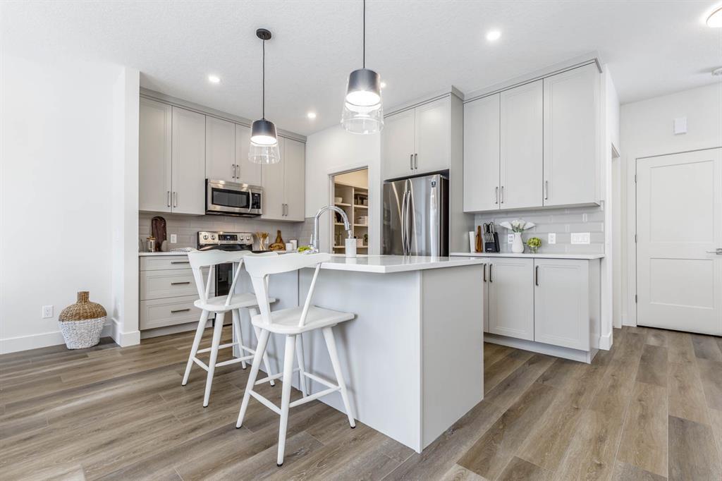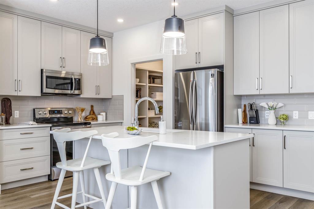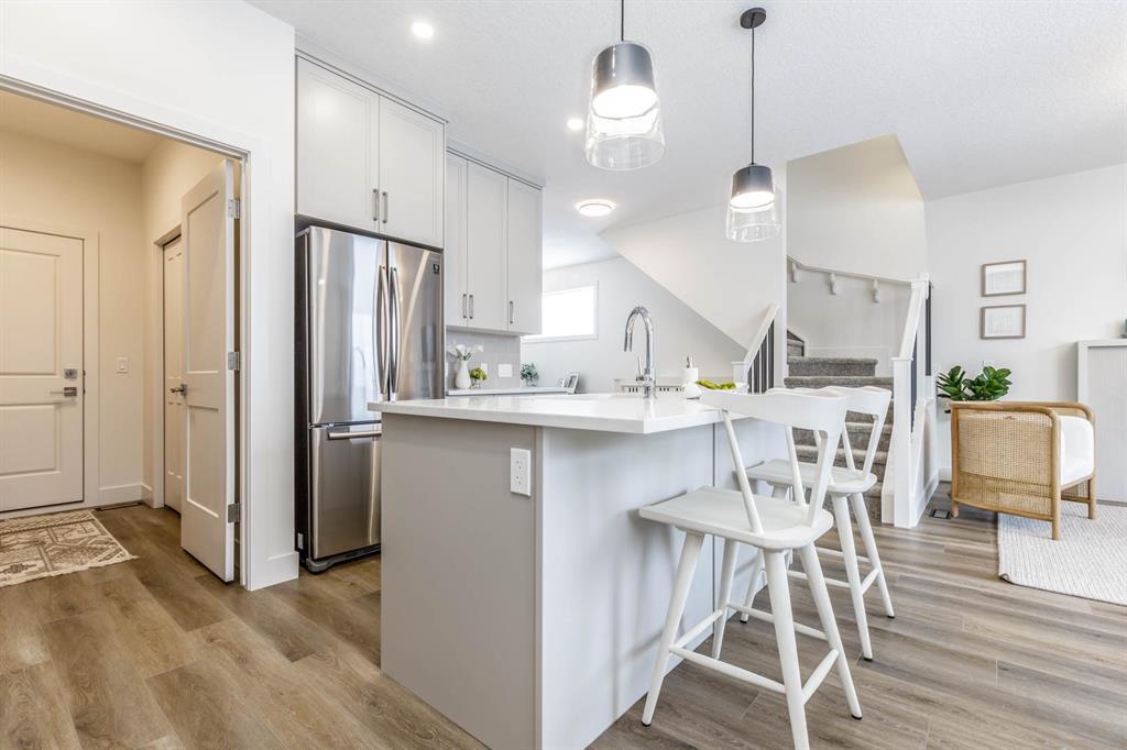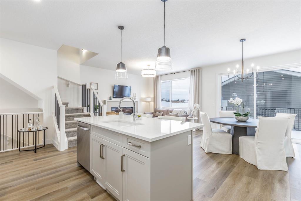 CUL-DE-SAC | IMMEDIATE POSSESSION | STEPS TO PARKS, PATHS & SCHOOL | NEW HOME WARRANTY | SEE VIRTUAL TOUR | This smart & affordable, Janssen built, 3-bedroom, 2.5 bath, with bonus room, 2-storey home features 1,844 sq.ft. of modern living space & quality finishes; ideally located in the family friendly community of The Willows. Your dollar really does go farther in Cochrane! Close to parks, playing fields, schools & community pathways. Main floor features generous living room with fireplace, an exceptional kitchen with adjoining eating nook opening onto a 12×10 deck overlooking your large open yard, powder room & rear mud room complete the offering. Upper level features a roomy master retreat with walk-in closet, 5-pce ensuite with dual sinks, soaker-tub & walk-in shower, full-sized laundry room with cabinet & sink, huge bonus room with large windows, 2 more bedrooms & an additional 4-pce bath. Upgraded features include: 9’main-floor walls, lacquered railings & metal spindles, living room gas fireplace, luxury vinyl plank flooring throughout main level, tile in laundry & upper baths, full height kitchen cabinets with soft close doors/drawers & full extension glides, quartz counters, undermount sink plus S/S appliance package. Upper baths also have quartz tops & undermount sinks, laundry room sink & cabinet. Site-built wood shelves. LoE Argon slider windows, R-50 attic insulation, high efficient furnace w/programmable thermostat & drip humidifier, tankless hot water “on-demand” system,, R/I plumbing in basement. Covered porch at front, finished deck at back w/aluminum railing & steps to grade. 20’w x 24’d double attached garage. Warranty includes 1 yr comprehensive, 2 yrs heating, electric, plumbing, 5 yrs building envelope, 10 yrs structural. RMS measurements taken from plan as home under construction.